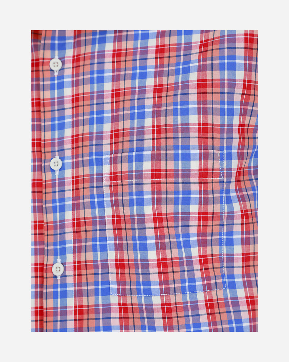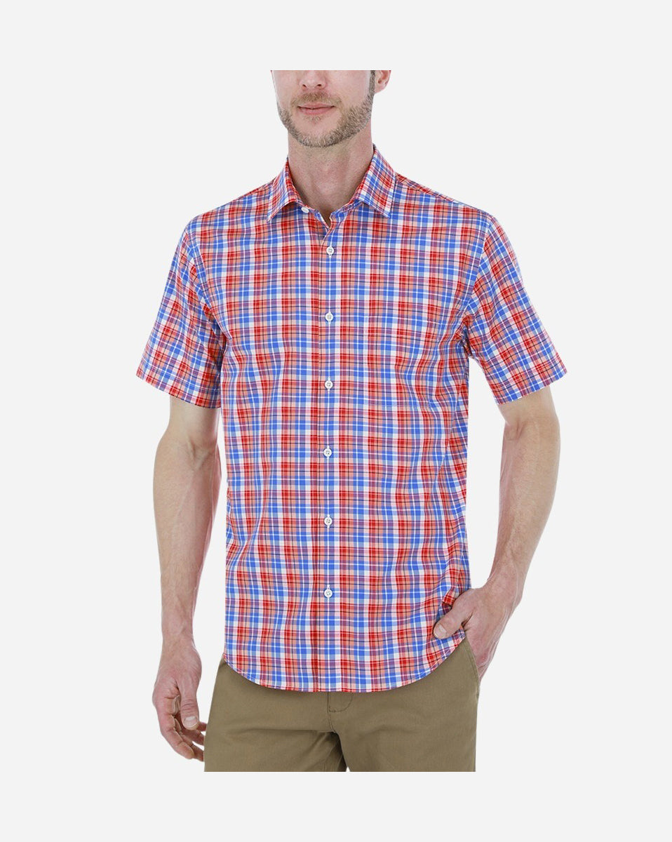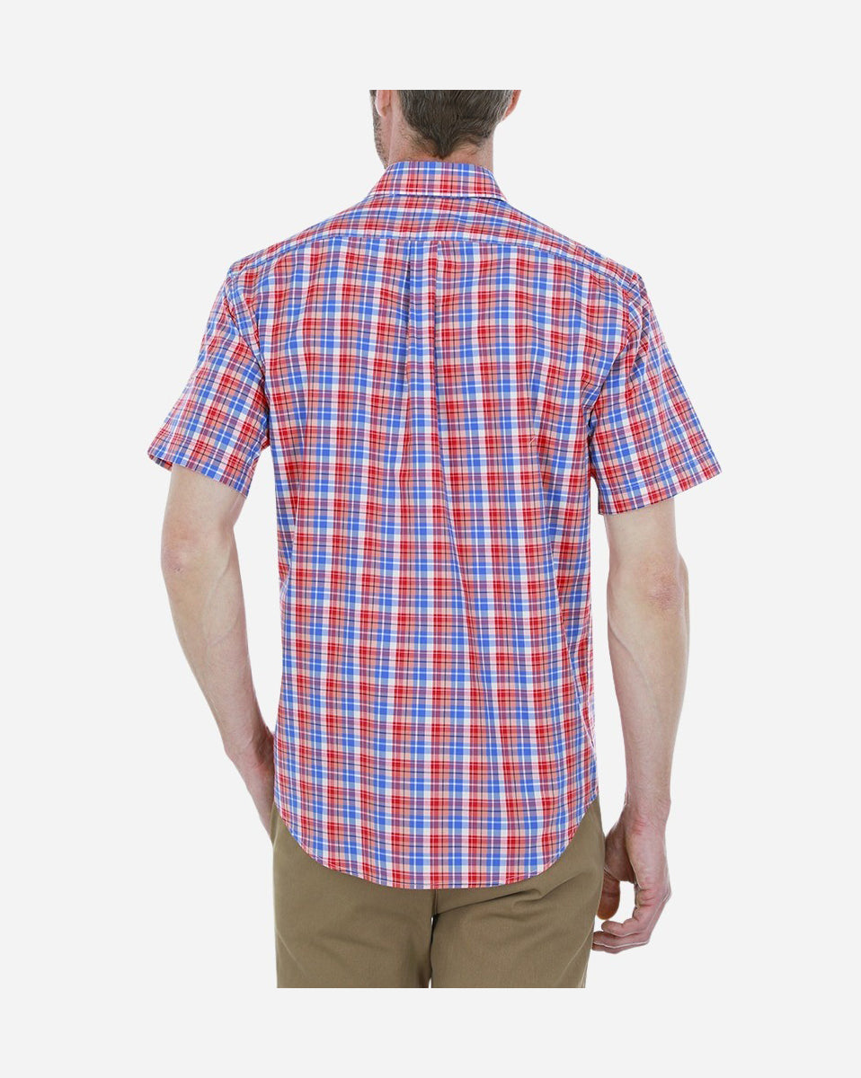 Camisa Casual Manga Corta Popelina Roja De Cuadros