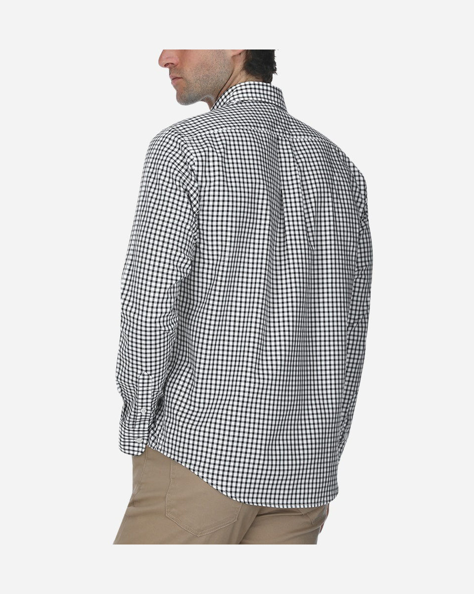 Camisa casual, regular fit 100% algodón en tejido popelina, que resulta en un tejido suave y fresco. Cuello francés, manga larga, puño con esquinas redondas, espalda con tablón central y bolsa en pecho.