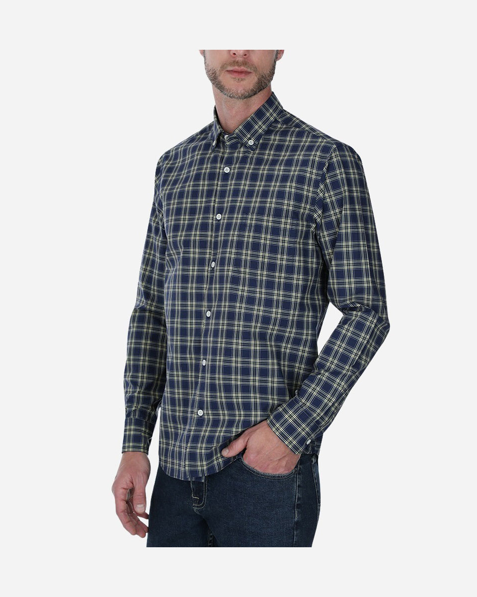 Camisa sport 100% algodón, regular fit. Tejido popelina ligera, ideal para un look casual y fresco. Cuello Bari con button down, aletilla con doble doblez para mayor estructura, puño redondo con doble botón y bolsa al frente con esquinas redondeadas. Los botones tienen acabado engomado. Ideal para uso diario por su comodidad y frescura.