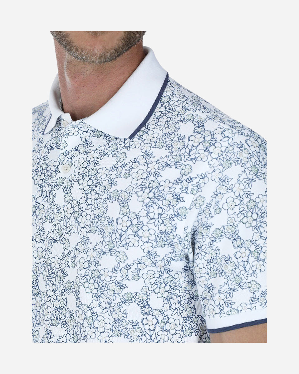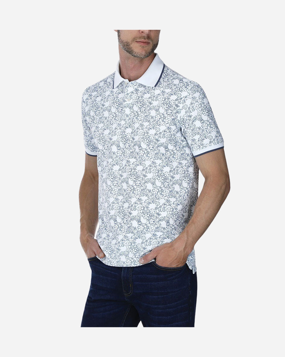 Playera estilo polo 100% algodón en tejido piqué de manga corta. Cuello estilo camisero. Estampado Floral. Una prenda clásica, combínala con tus jeans favoritos.