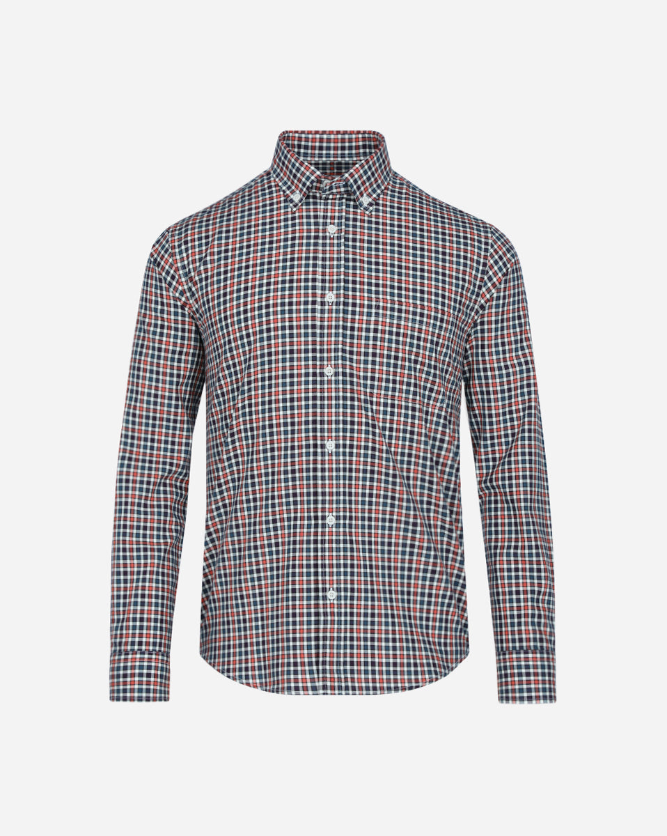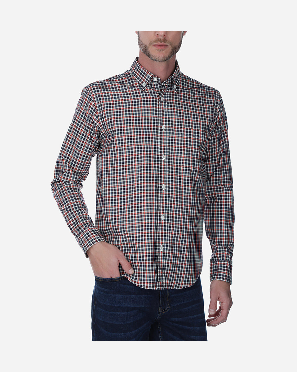 Camisa 100% algodón en tejido panamá. Regular Fit. Cuello bari con button down, manga larga, puño con terminación redonda y doble botón para mejor ajuste y espalda con tablón central. Cuenta con bolsa en pecho con esquinas redondas. Su textura suave y su diseño de cuadros clásico la convierten en una opción versátil para cualquier ocasión.