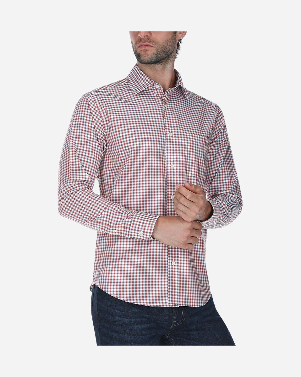Camisa sport 100% algodón, Regular Fit.Tejido popelina con diseño a cuadros. Cuenta con cuello francés sin varilla, puño redondo con doble botón y bolsa al frente. Los botones tienen acabado engomado. Ideal para uso diario por su comodidad y frescura.
