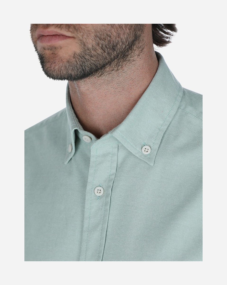 Camisa sport Polo sur 100% algodón, manga larga, en tejido liso. Cuenta con cuello Bari con botón (buttondown), puño redondo con doble botón y bolsa al frente con esquinas redondeadas. Los botones tienen acabado engomado y se incluye botón de repuesto en la parte inferior de la aletilla.