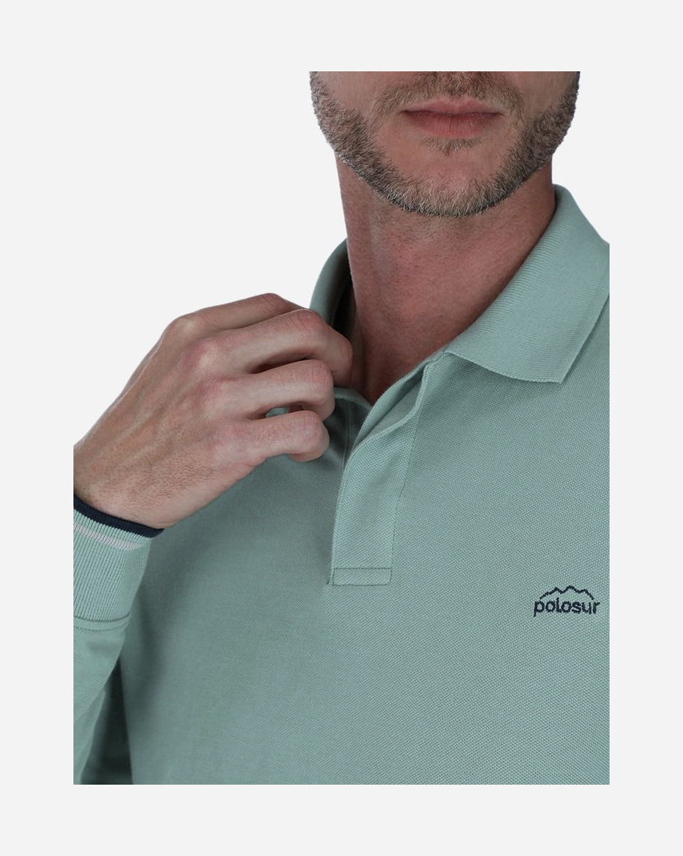 Polo de manga larga 100% algodón en tejido piqué liso. Cuenta con cuello y puños en rib al tono, que aportan uniformidad y un acabado limpio. Ideal para un look casual con mayor cobertura y comodidad.