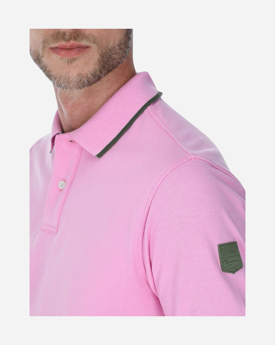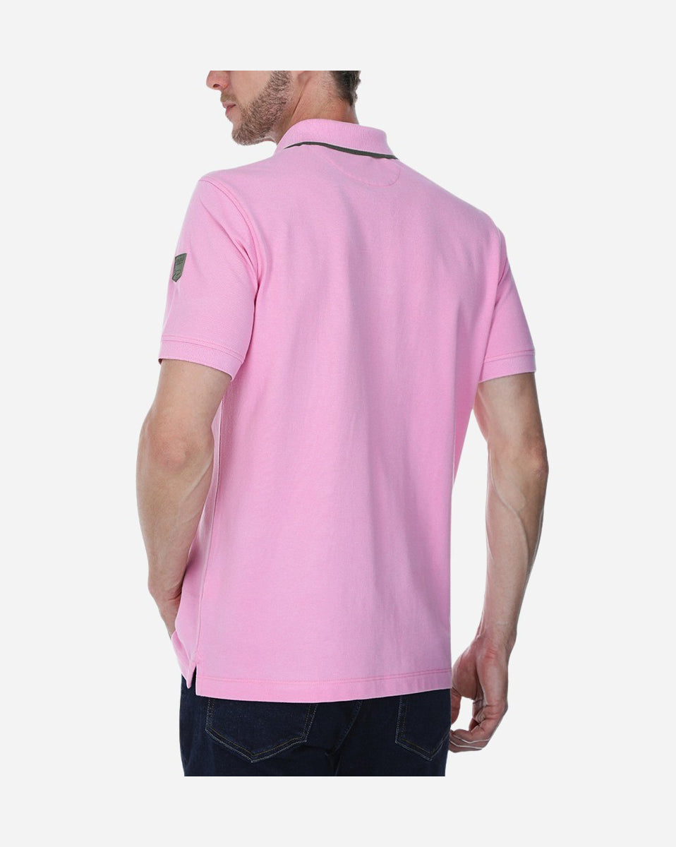 Playera polo 100% algodón en tejido piqué. Tejido que resalta por su durabilidad y resistencia con textura en relieve de panal. Detalles en contraste en aletilla y cuello. Detalle de parche de goma en relieve en manga izquierda.